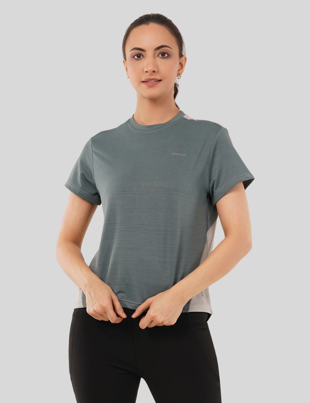 Ladies Polyester V-Neck Dry Fit T-Shirt -X05 GREY MELANGE - REGULAR FIT