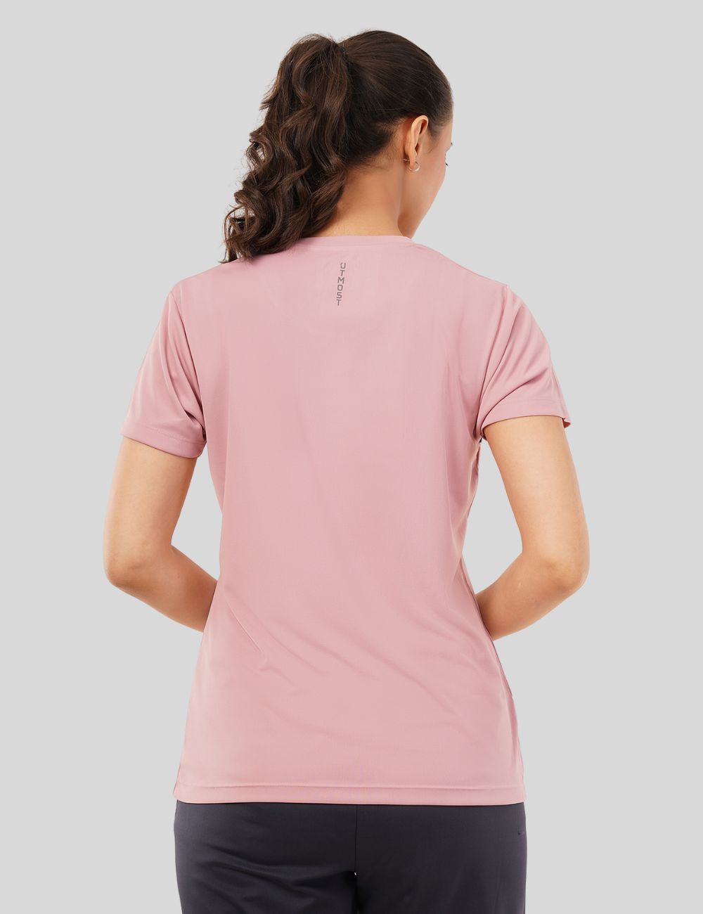 Ladies Polyester Chest Print Dry Fit T-Shirt X01 Cool Pink - Regular Fit