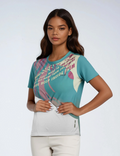 Ladies Polyester Sky Blue Printed Dry Fit T-Shirt X01 - Dual Color- Regular Fit